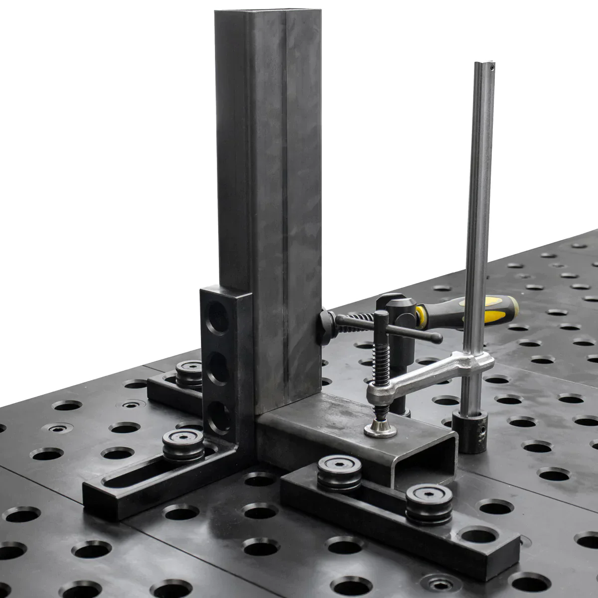 Place the Inserta Clamp into the 28 mm holes on the Alpha 28 Tabletop.